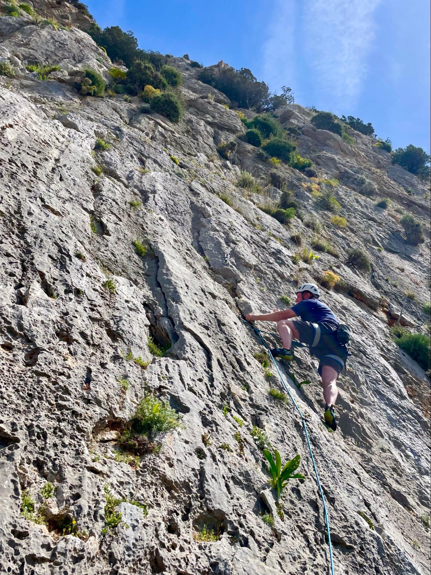 Our grades ranged from 4s upward and Alex did a 6a and we are now nicely set for the year. A week is definitely needed as we lost 2 days travelling – but the whole transfer was easy with car hire being massively cheaper than the UK. As we ate out every night including a couple of dinners with Alex, Tom, Neal and Lee – it cost me I guess 1000 euros so it works out at 29 euros per climb – only joking as I am no longer an accountant – as with all our travels we are in it for the journey and friendship.