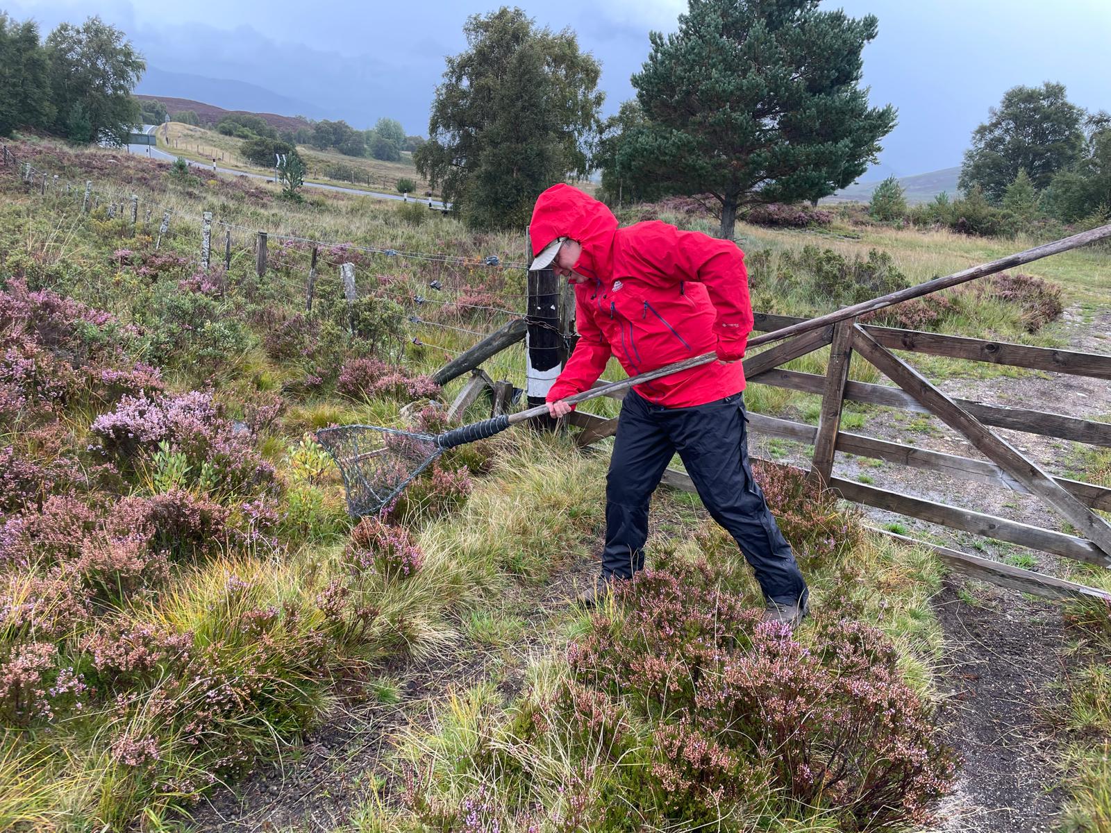 Again a poor forecast so we started up this small but well formed hill behind Kingussie. Met some habitat restorers on the way down to Pitmain Lodge and lots of spaniels. At the lake after investigating the small hydro schemes the weather seemed better than expected so Peter and Dan headed up to do a quite windy but dry circuit of Carn an Fhreiceadan and Beinn Bhreac (878m) on the estate roads. Lovely views and surprisingly sunny.