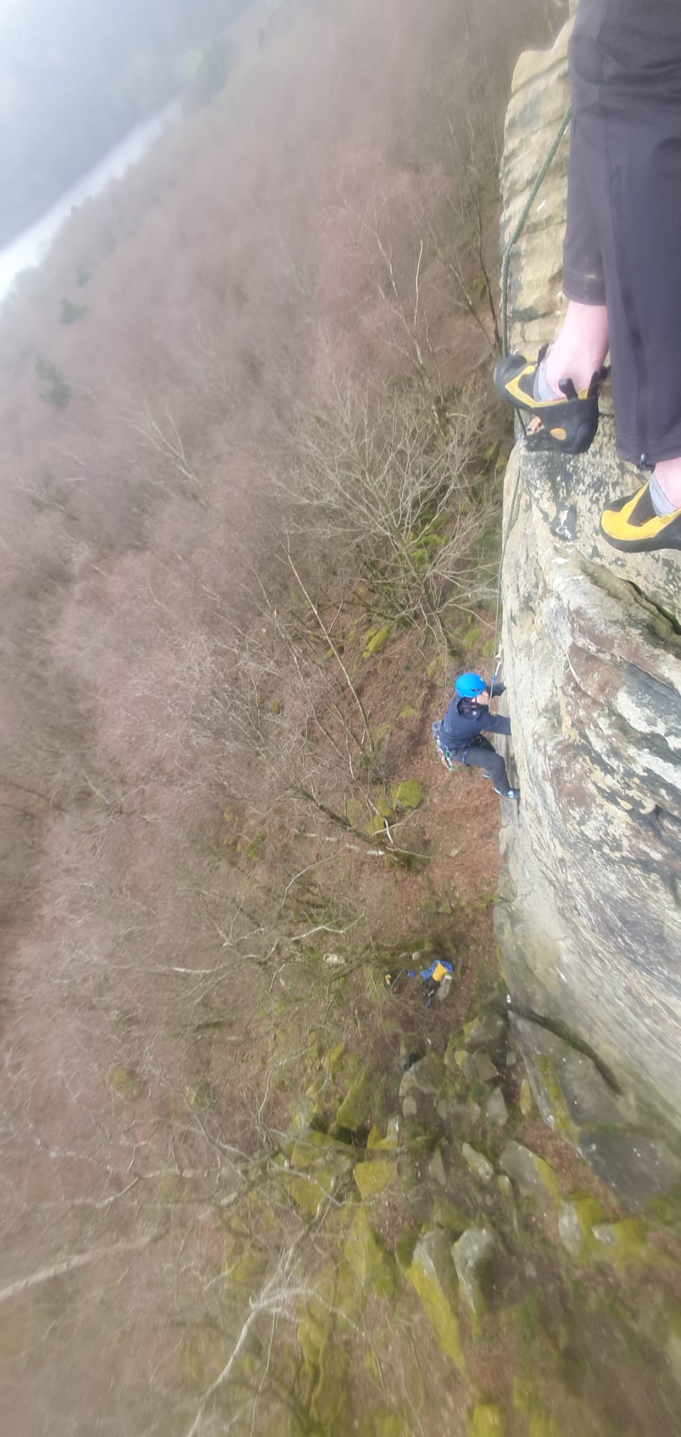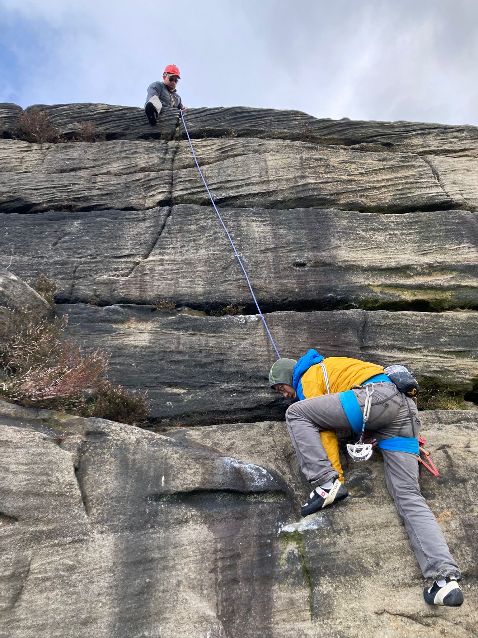 The majority of the group arrived on Friday, with Tom, Matt, Charlie, Myself and a non-member guest Leslie-Anne (LA) arrived early and after a brief stop in Hathersage to spend money in Outside we headed to climb at Wharncliffe Edge as this looked to have the best chance of staying dry.