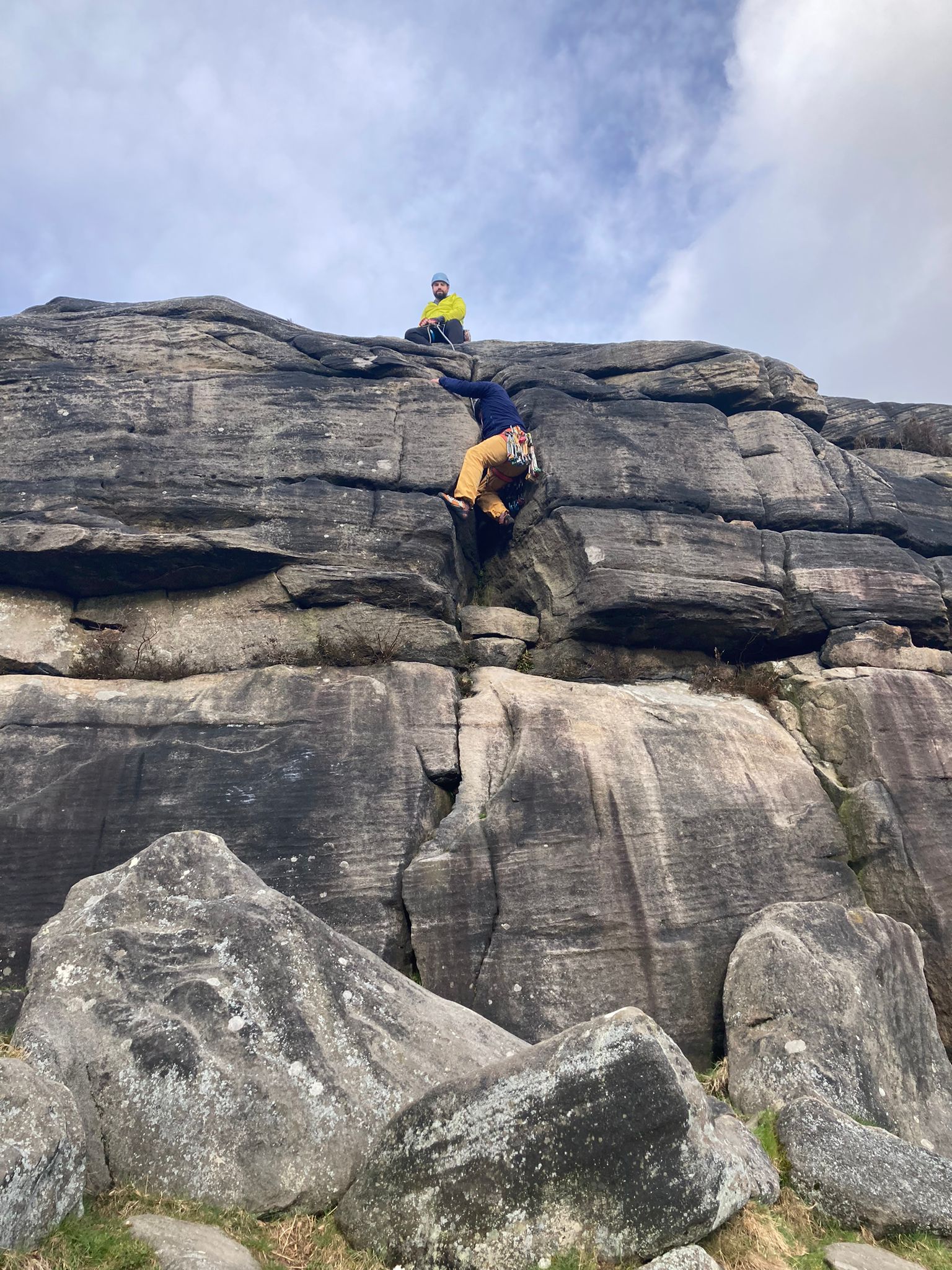 The rest of the group persevered at Birchen and were rewarded with good weather in the afternoon. Charlie climbed with Jack and Stuart and racked up an impressive 10 routes from Severe to VS including ascents of the ‘Classic Rock’ ticks of Topsail and Sail Buttress.