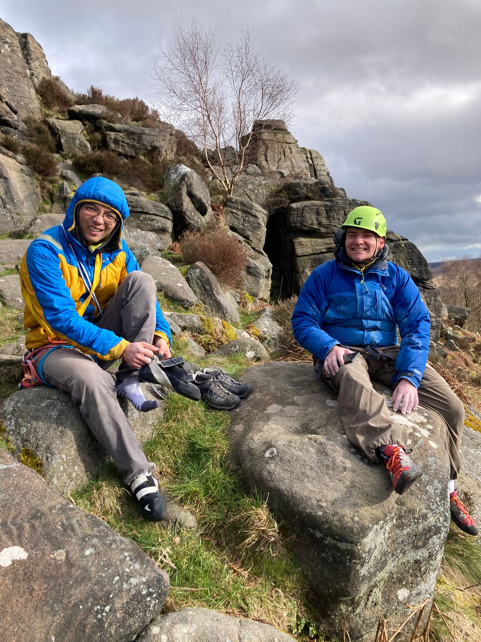 The rest of the group persevered at Birchen and were rewarded with good weather in the afternoon. Charlie climbed with Jack and Stuart and racked up an impressive 10 routes from Severe to VS including ascents of the ‘Classic Rock’ ticks of Topsail and Sail Buttress.