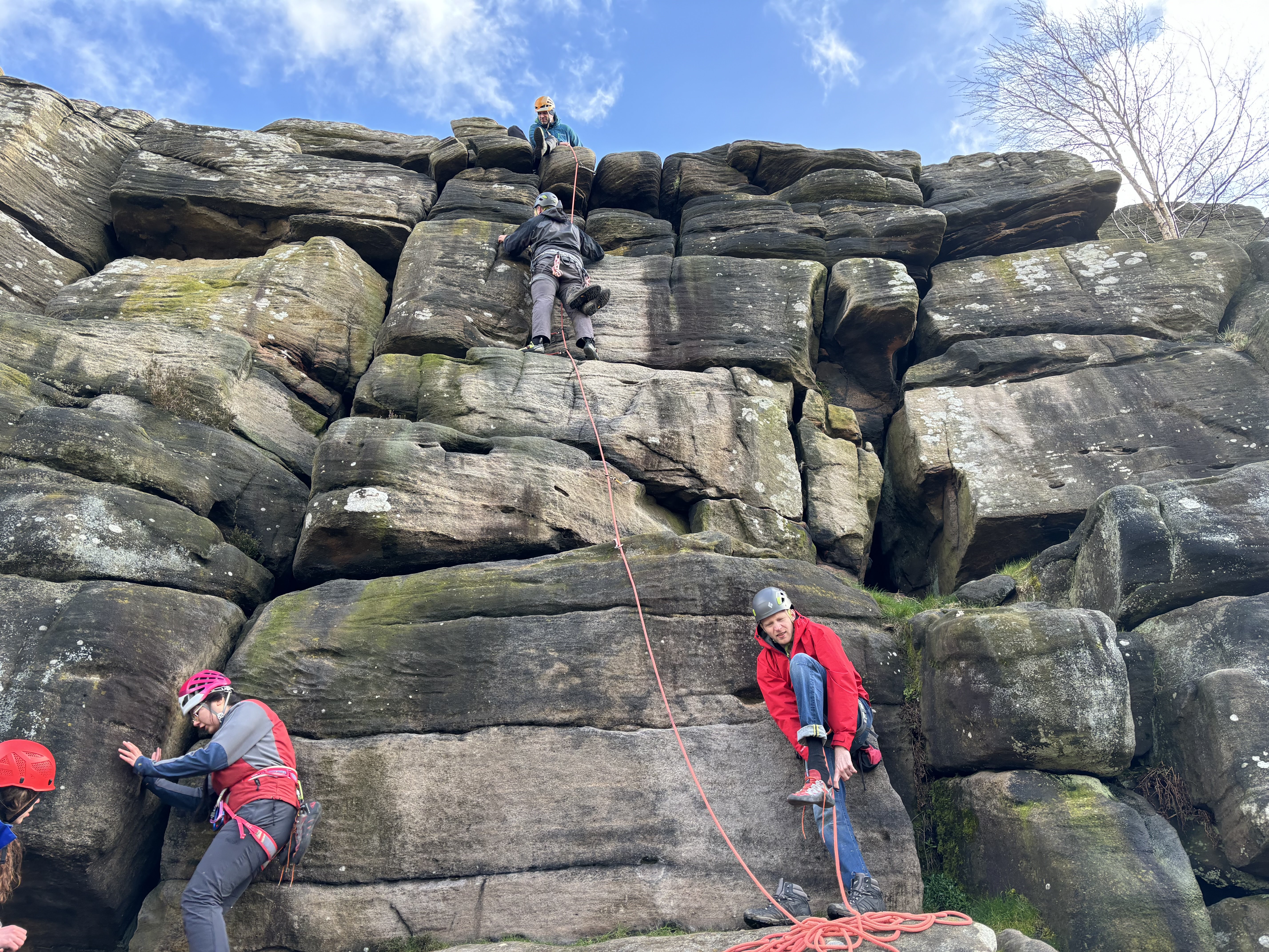 On Sunday we cleaned the hut down and headed to Birchen Edge to squeeze in an introduction to seconding a trad route. We headed to Emma’s Slab where we set up lines on Emma’s Dilemma, Emma’s Temptation and Emma’s Delusion.
