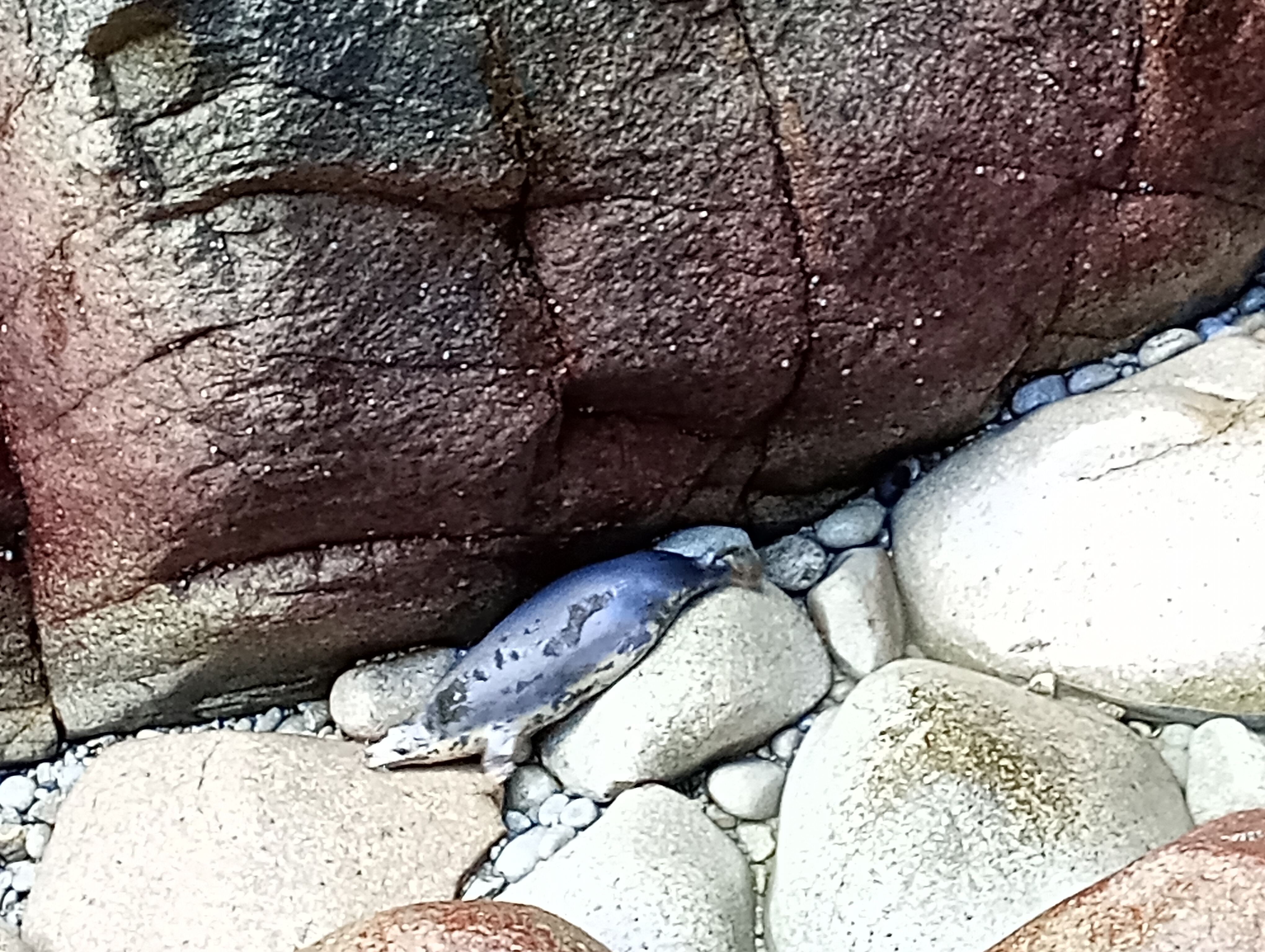 After breaking for lunch, James and I decide to make the long walk over to Seal Slab in the afternoon so James can do some leading and we can see the Northern part of the Island. This lives up to its hard-to-find reputation, and the tide is rising once we’ve found it and set up the abseil. Abseiling down, I’m met with spray from a wave and decide a high-tide start will be necessary. But not before I’ve had to free the abseil rope, the knot at the end of which has jammed itself below a boulder in the sea. Meeting me at the belay, James leads off on the Diff that gives the slab its name, a fun route up the middle of the slab. Finished for the day we venture up to the tip of the Island to take in the view.