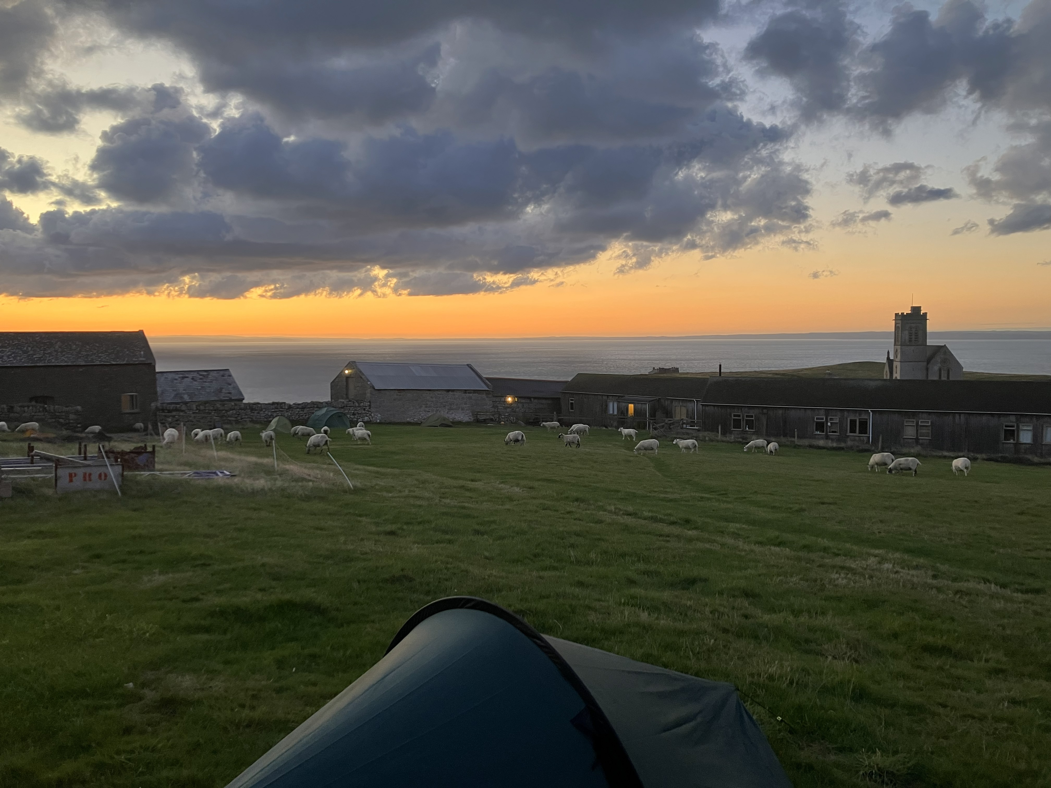 We retreat to the Pub and await our luggage, which arrives mid-afternoon having been thoroughly soaked on the crossing (dry bags would have been useful). Peter and I largely get away with it, but Neal’s sleeping bag and clothes have to be tumble dried which the Island staff kindly do for him. We then snatch a lull in the worst of the weather to pitch our tents in the afternoon, before retiring to the pub for our evening meal. This is where we will choose to spend all our evenings over the week, and considering its monopoly position and captive audience, the pub offers good food at reasonable prices.